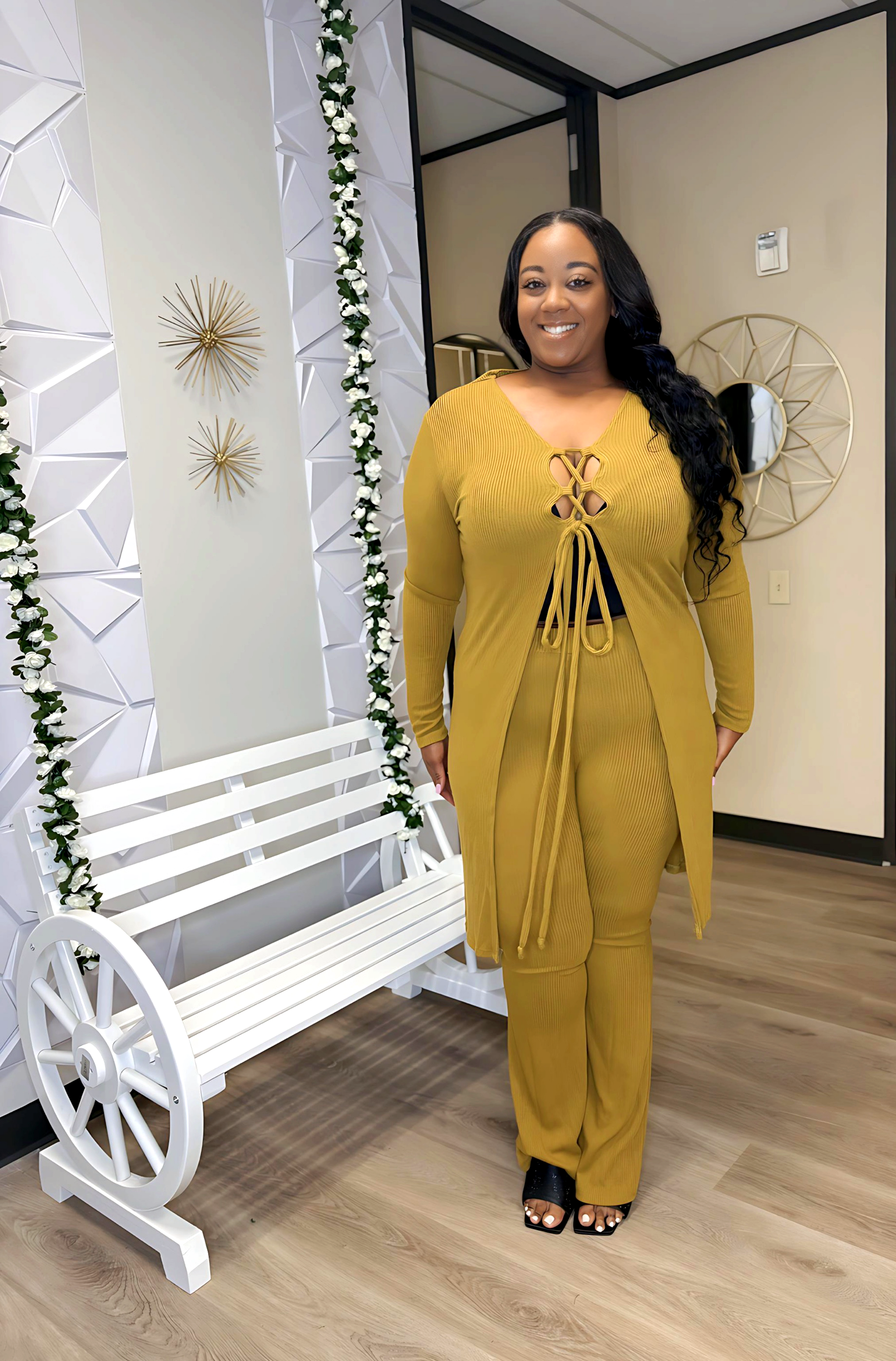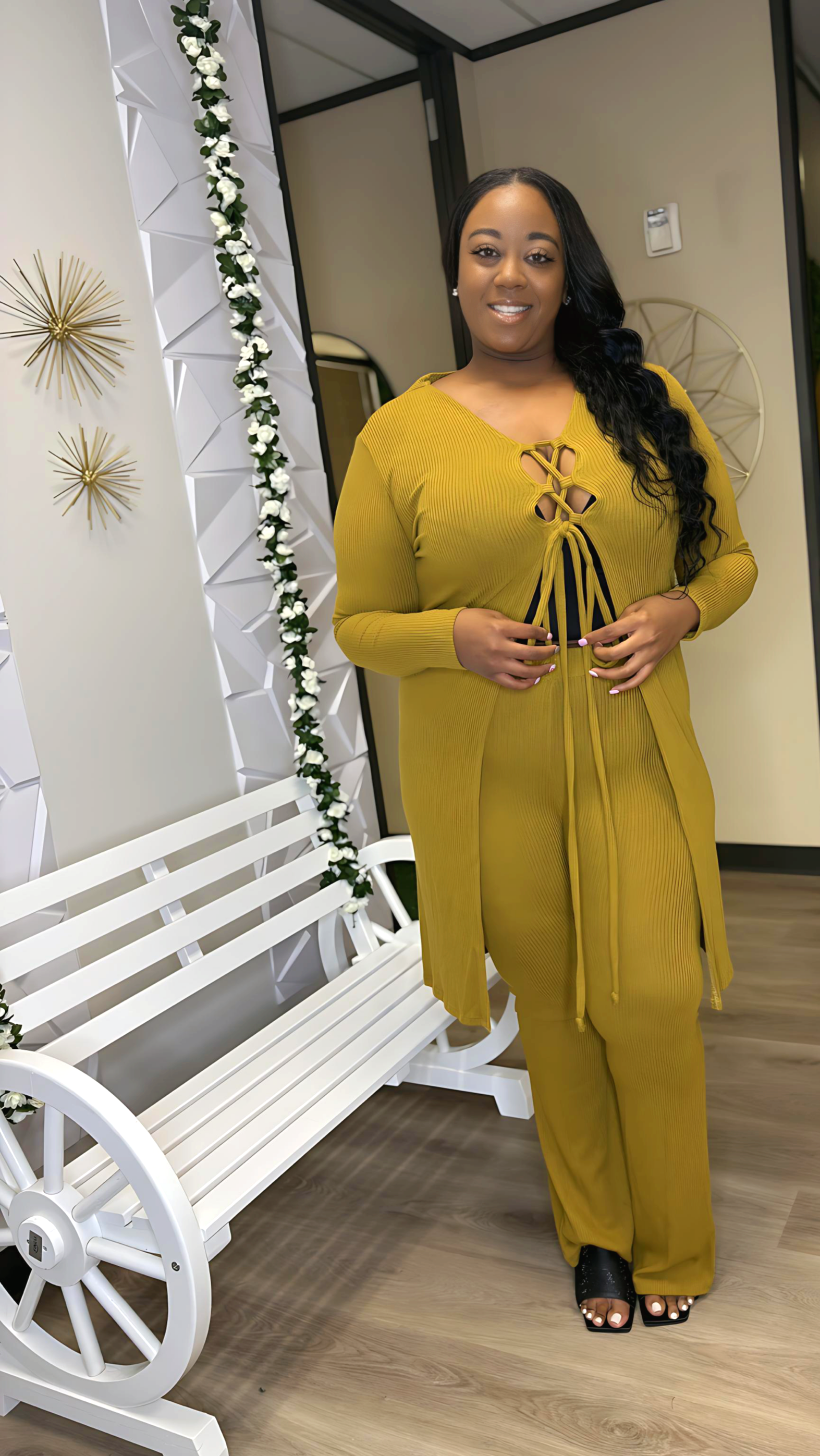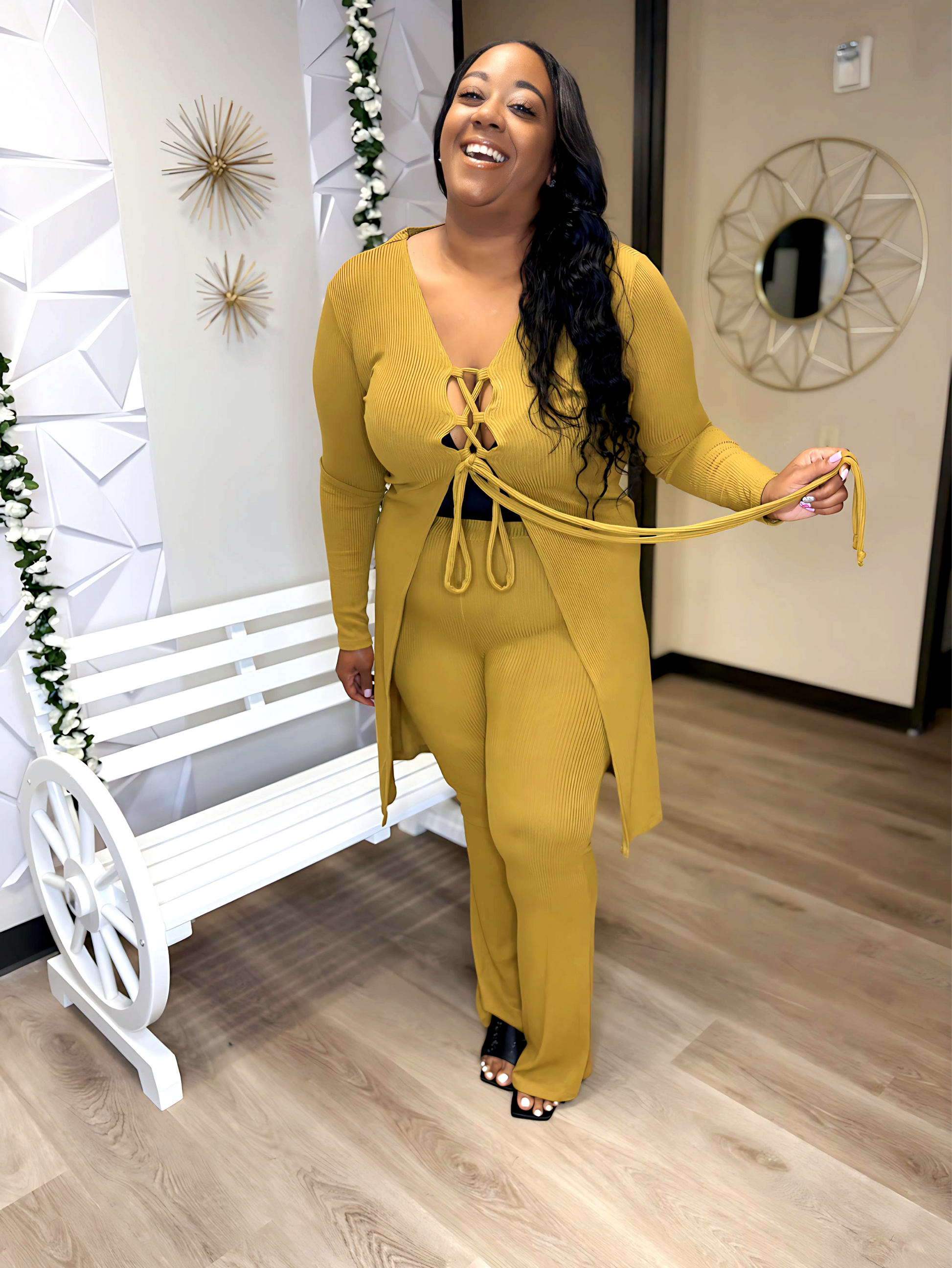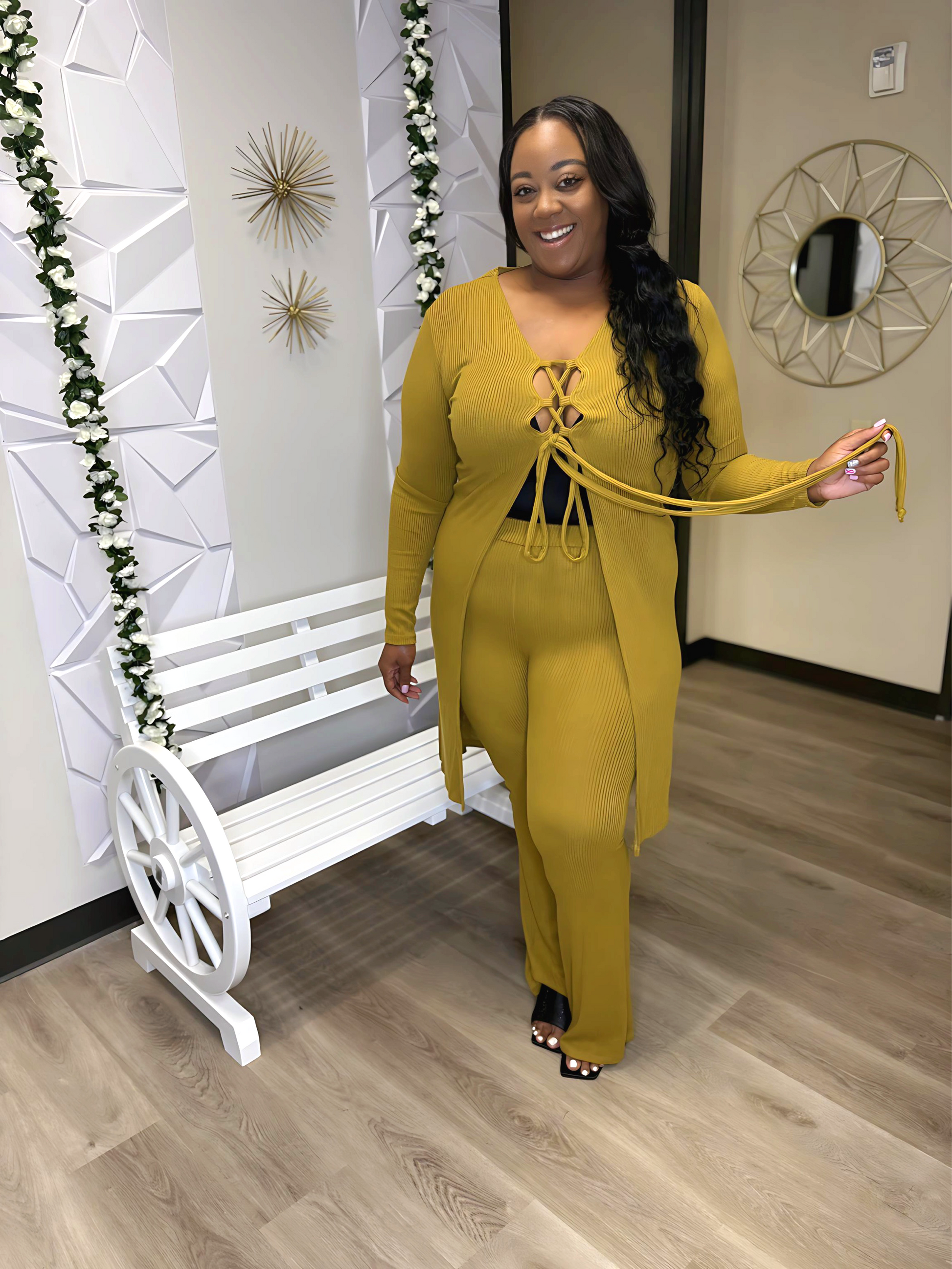 Introducing the Wasabi Set - the perfect combination of comfort and style. Made with 100% ribbed, stretchy fabric, this 2 piece set will keep you looking and feeling your best. The soft material conforms to your body's shape for a flattering fit. Experience the ultimate in comfort with the Wasabi Set.